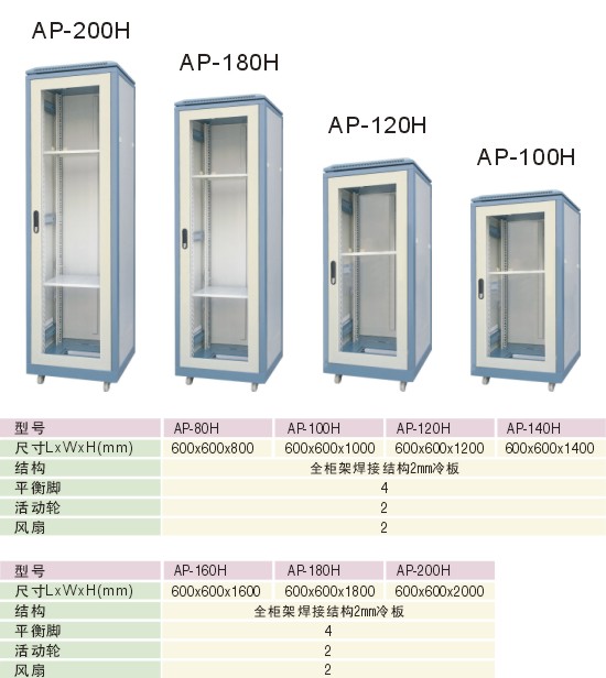 • 1600mm以上(含1600mm)的机柜有两个隔层