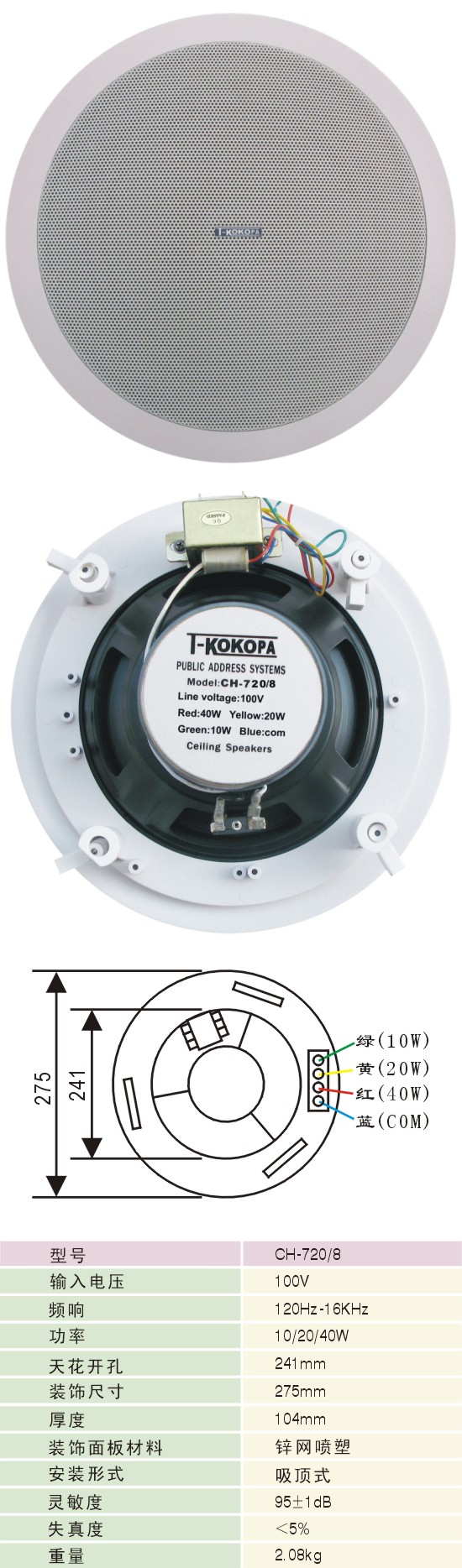 产品名称: 吸顶同轴天花喇叭   文档下载: