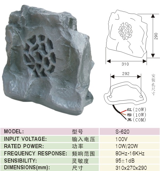 产品名称: 仿真岩石音箱   文档下载: S-620使用说明