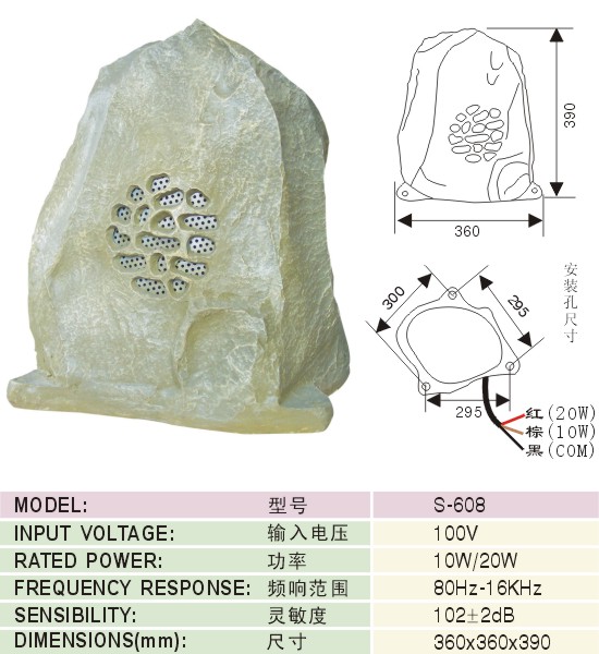 产品名称: 仿真岩石音箱   文档下载: S-608使用说明