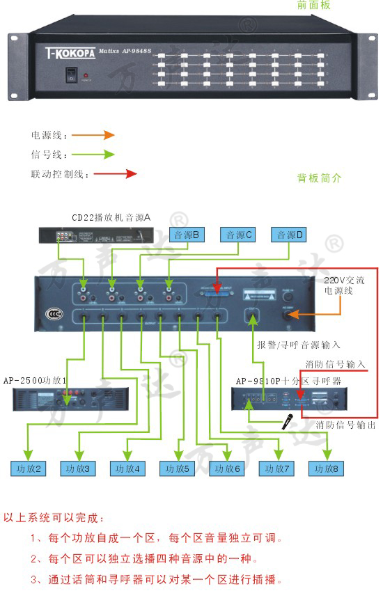 - 可实现多音源分区广播