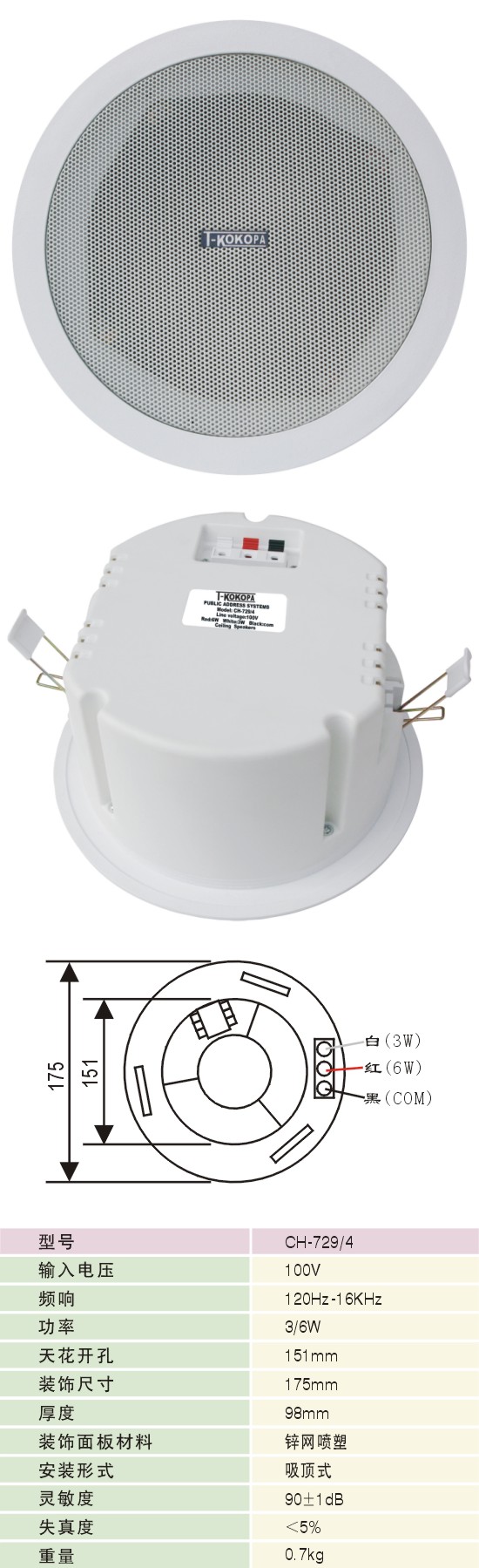 产品名称: 吸顶天花喇叭   文档下载:
