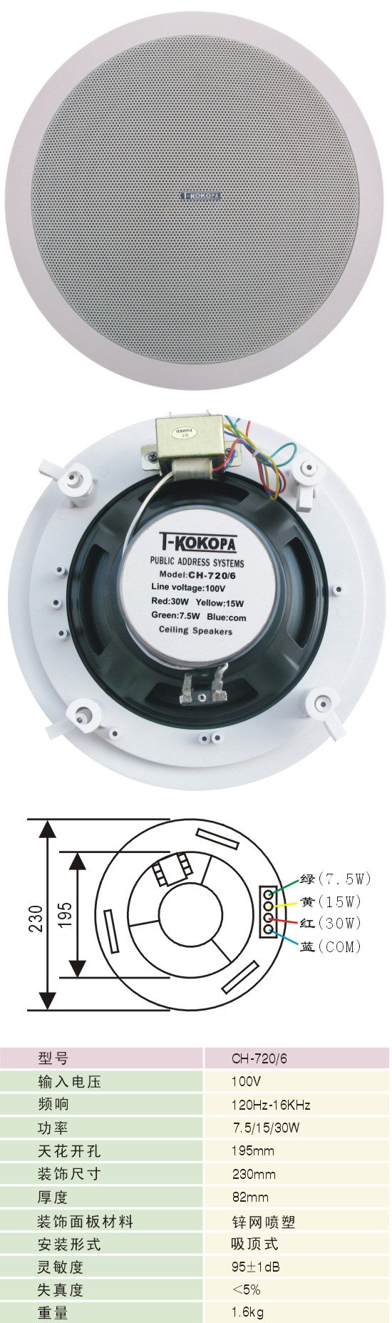 产品名称: 吸顶同轴天花喇叭   文档下载: