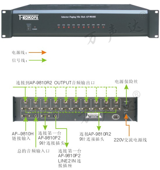 - 可连接多达10台AP-9810R2对分区进行寻呼