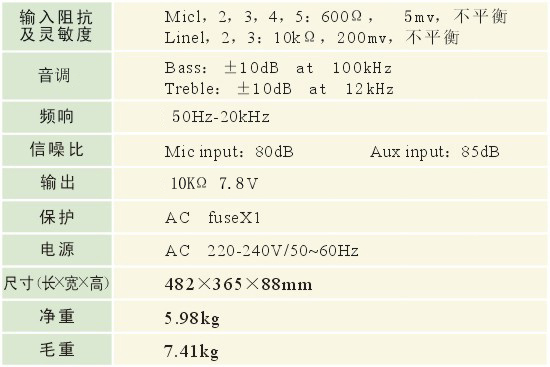 - 话筒/线路分路音量控制,统一音调调节